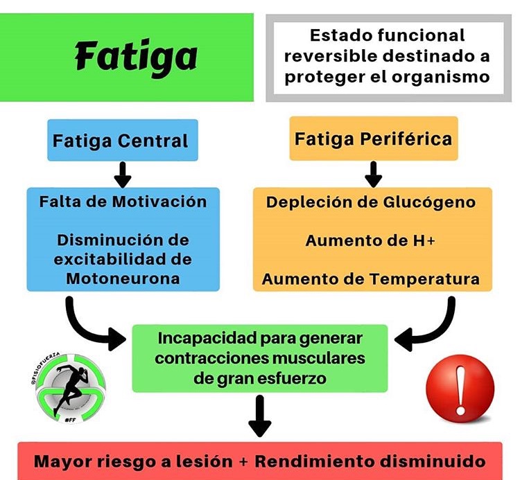 La fatiga se define como un estado funcional que aparece como una respuesta homeostatica transitoria y reversible, con el objetivo de proteger el organismo produciendo una necesidad de disminuir la intensidad de la fuerza.